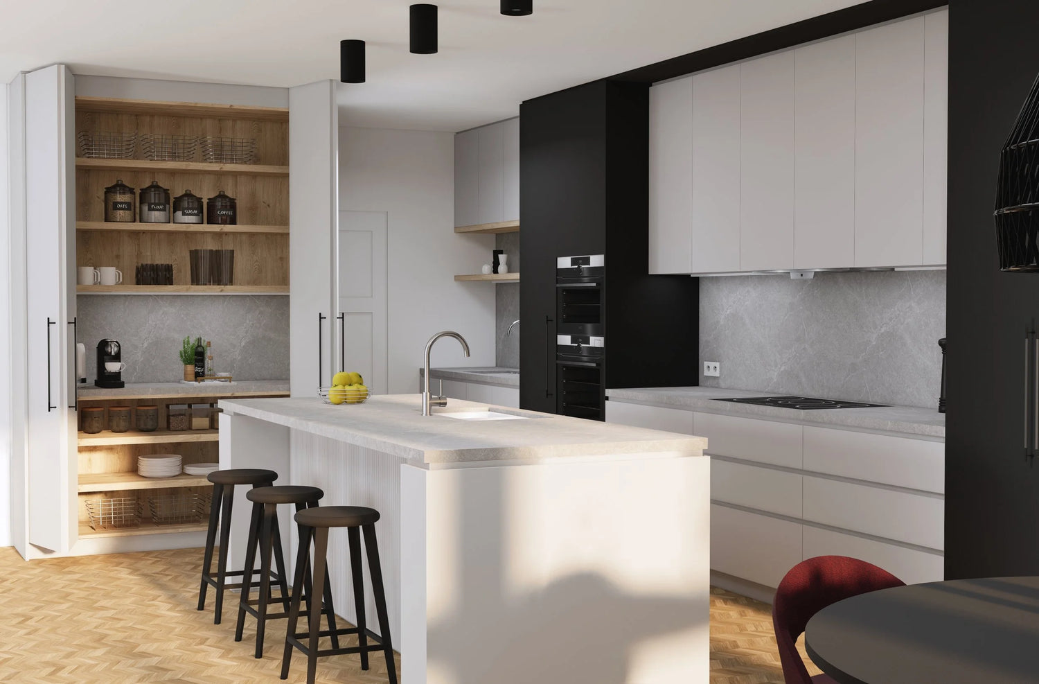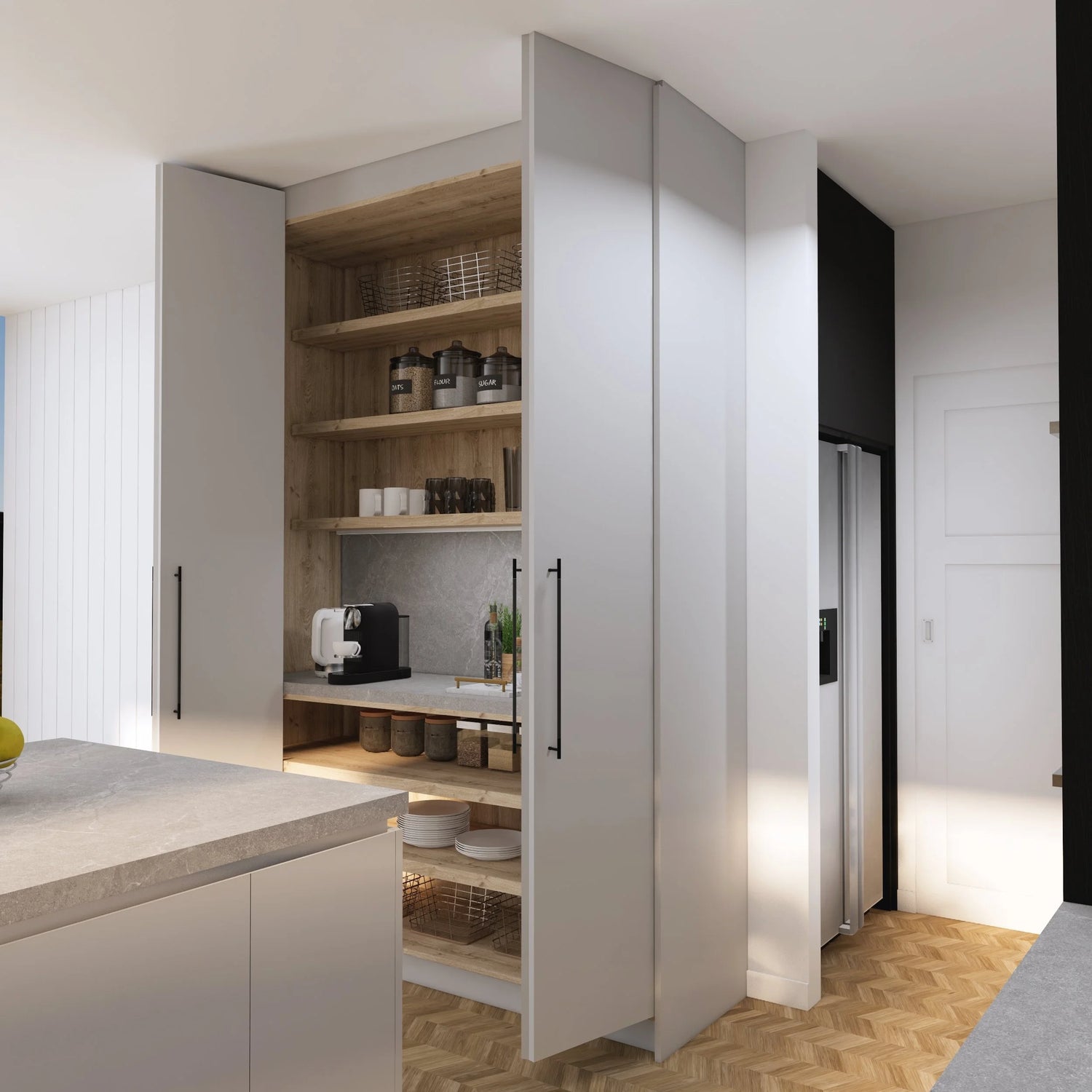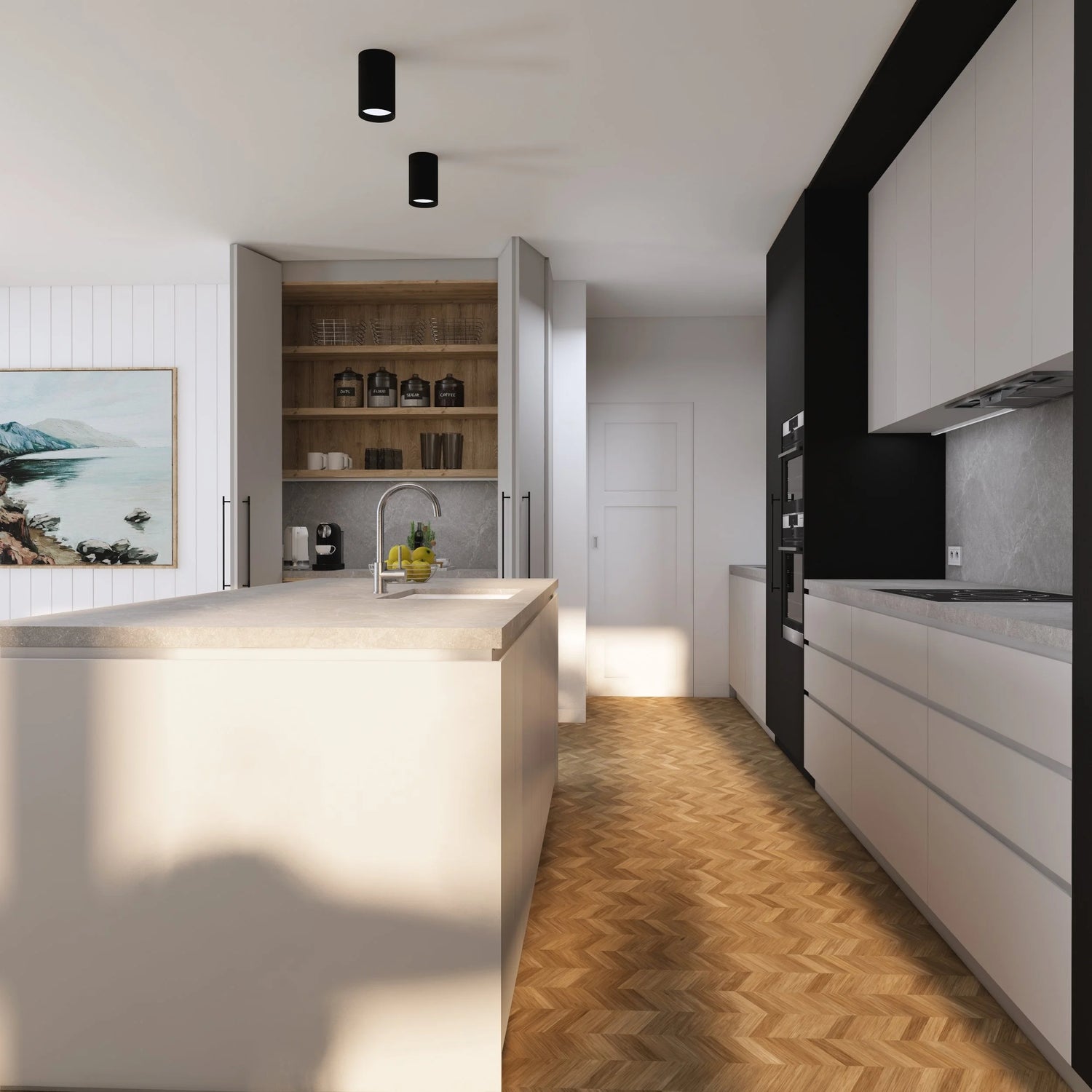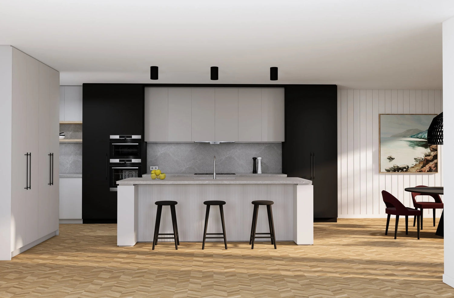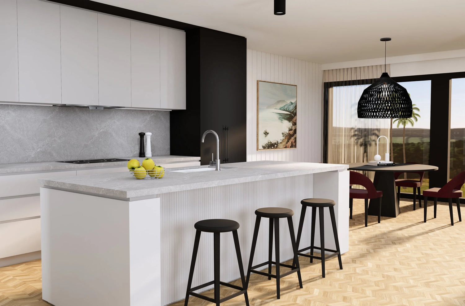 Welcome to Kristin's contemporary kitchen design “SANTA MONICA”, where sleek sophistication meets modern functionality.